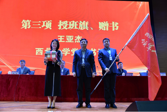 西北大学党委书记王亚杰为学员授旗、赠书