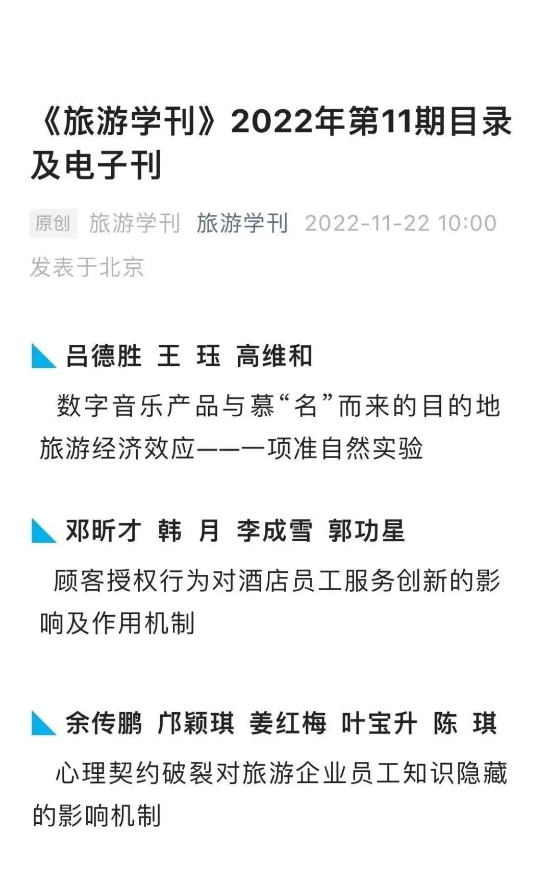 学院博士生吕德胜和导师王珏教授团队合作论文在权威期刊《旅游学刊》发表