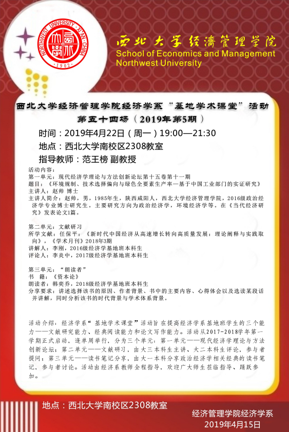 776net必赢官网经济学系“基地学术课堂”活动第五十四场(2019年第5期)