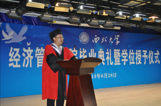 最后,院长任保平教授发表了热情洋溢的讲话。他与毕业生们一起回顾了过去几年的学习生活,向为培养毕业生成才做出努力、付出心血的全院教职员工表示衷心的感谢。向同学们几年来为学业付出的辛勤努力致以崇高的敬意。向在被称为“史上最难就业年”的今年顺利找到工作,即将奔赴各条战线建功立业的经管学子表示由衷的祝贺。