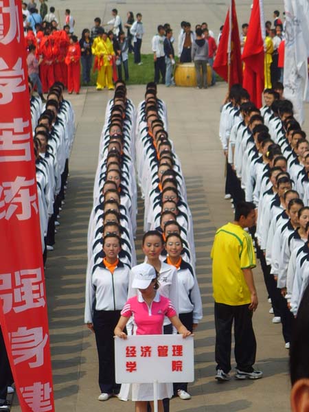 昨日,烈日当头,但同学们的热情赛过火辣辣的太阳。我院代表队第十二位入场,队员们身着统一的服装,喊着“经管学院,再创辉煌,众志成城,振兴西大” 的嘹亮口号,迈着整齐的步伐,进入赛场,队员们个个精神抖擞,神采飞扬。随着广播操轻快的节奏,场上,队员们的动作举摆停控到位、干净利落,每一个动作都做得标准、有力、优美。场下观众助威声一浪高过一浪,为场上的队员加油鼓劲。场上、场下同学团结一致,众志成城,充分展示了我院学生团结进取的精神面貌,最终,我院新生代表队以97.03的高分获得冠军。