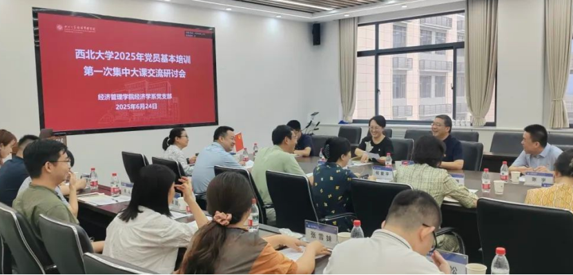 按照学校党委相关要求,6月24日下午,学院经济学系党支部在623会议室召开“西北大学2025年党员基本培训第一次集中大课”研讨交流会。陕西教育干部培训中心主任李国良,陕西教育干部培训中心副主任张晓瑾,校党委组织部副部长、党校副校长杨红涛,学院党委书记张宇出席会议,经济学系党支部全体党员参加会议,会议由学院副院长、经济学系党支部书记吴丰华主持。