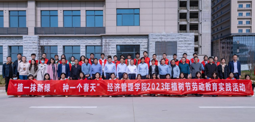 为迎接全国第45个植树节,3月10日,776net必赢官网在长安校区宏观经济大楼前开展植树节劳动教育实践活动。校长郭立宏、校党委副书记张清、副校长张远军、吴振磊,国内处负责人和经管学院师生代表80余人参加。